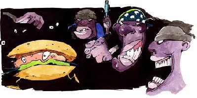 Катится Бигмак дальше, а навстречу Шериф: не двигайся, парень, ты окружен, у тебя есть только право не отвечать на вопросы, позвонить своему адвокату, написать открытку своей кузине и нарисовать рисунок своему психоаналитику.